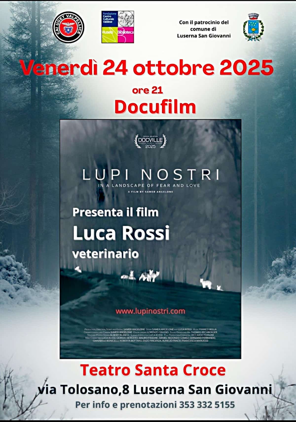 Descrizione Lupi nostri un docufilm presentato dal Dott. Luca Rossi. Un docufilm girato fra le nostre valli che parla di amore per i grandi carnivori e paura per gli stessi.
