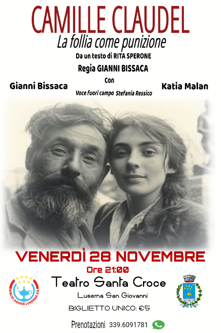 Camille Claudel, la follia come punizione da un testo di Rita Sperone e con la regia di Gianni Bissaca. Camille Claudel muore nel 1943 dopo trent'anni di isolamento in manicomio. A farla rinchiudere è la madre che non ha mai tollerato la vita di quella figlia artista e ribelle, amante di Rodin che, come gli altri, l'abbandonerà al suo destino di sepolta viva in manicomio.