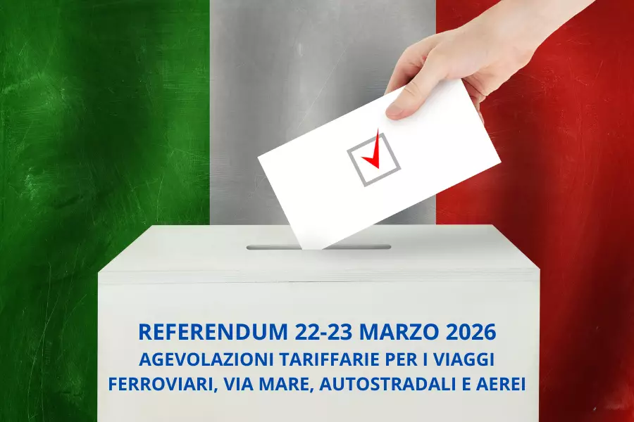 In occasione della prossima consultazione referendaria del 22 e 23 marzo 2026, le persone che si recheranno a votare nel proprio comune di iscrizione elettorale potranno usufruire delle agevolazioni di viaggio applicate da enti o società che gestiscono i relativi servizi di trasporto ferroviari, marittimi, autostradali e aerei.